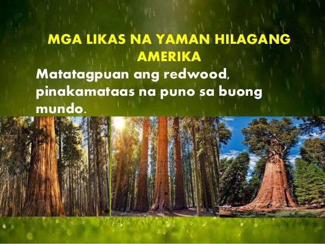 9212017 MGA LIKAS NA YAMAN HILAGANG AMERIKA Matatagpuan ang redwood pinakamataas na puno sa buong mundo. 1nangongolekta ng tributo7 letters 2iba pang tawag sa tributo 5 letters please help me tom na pasahan niyan please yung complete sana help me di ko na alam gagawin ko. 5142017 LIKAS NA YAMAN SA TIMOG AMERIKA NAtatanging Hayop Jaguar 3.