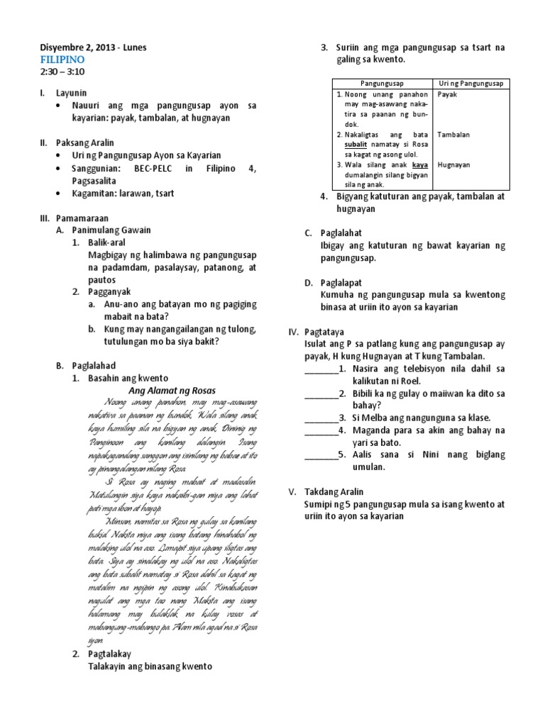 Filipino Paggamit Sa Pagsasalaysay Ng Mga Uri Ng