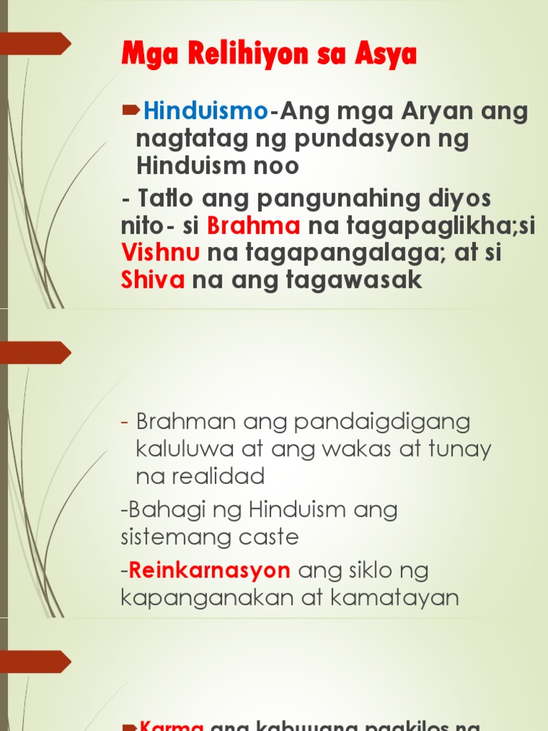Ang Vedas ay ang isa sa mga kauna-unahang banal teksto ng Hinduismo na kung saan nakasulat sa Sanskrit. Kristiyanismo ang relihiyong may pinakamaraming tagasunod5. Nagsimula ito sa salitang BIBLIYA na ang ibig sabihin ay libro.