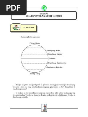 Jul 09 2018 Mga pahina sa Gabay ng Guro TGWEEK 1 2Mga pahina sa Kagamitang Pang-Mag-aaral MISOSA Lessons 2368 Grade IV 3Mga pahina sa Teksbuk MakabayanKapaligirangPilipino IVpp9-17 4Karagdagang Kagamitan mula sa portal ng Learning Resource B. Gawain 3 Mataas na latitud MGA ISPESYAL NA GUHIT a Mababang latitud Gitnang latitud Panuto. Pag-ikot ng mundo sa sariling aksis c.