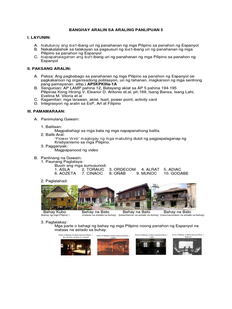 Start studying Bahagi ng Bahay Na Bato -for Grade 5 students-. Kasingtigas ng pako ang balatnito. Sinimulan nila ang pagtatayo ng mga tirahang higit na matibay kaysa mga nakagisnang bahay kubo.