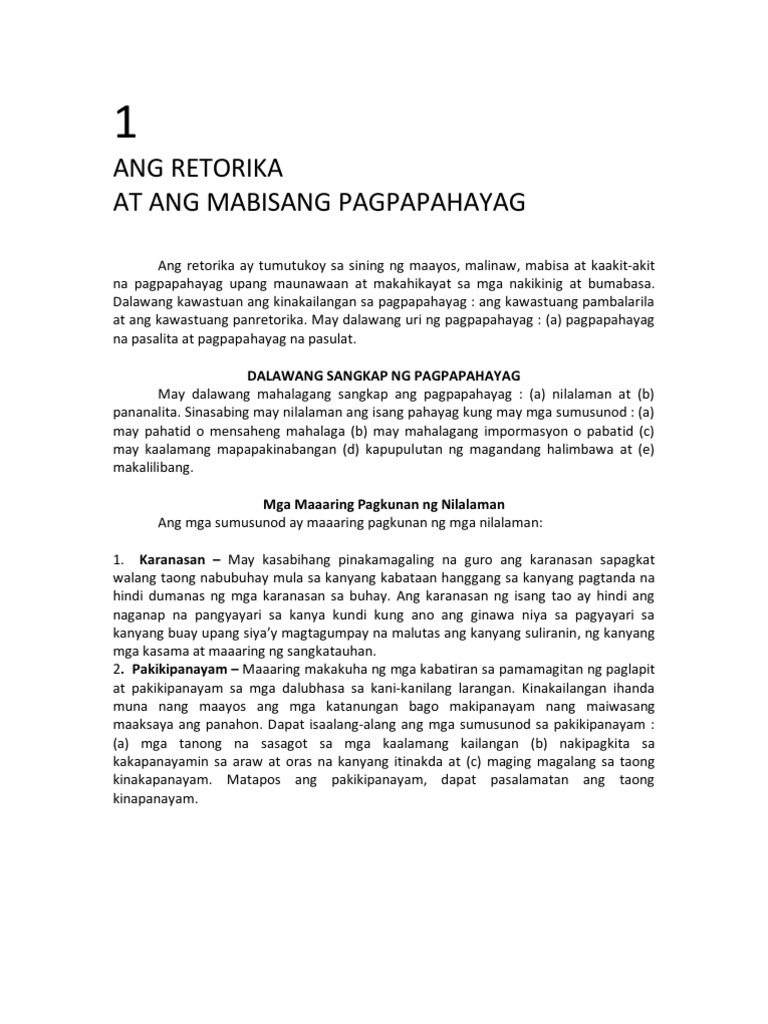 Nagsisilbing instrumentong panggising sa mambabasa dahil napupukaw. Simulain Kalikasan at Kahalagahan ng Retorika 3 Hours MODULE 1. Ang pagpapahayag ay kailangang may bigat.