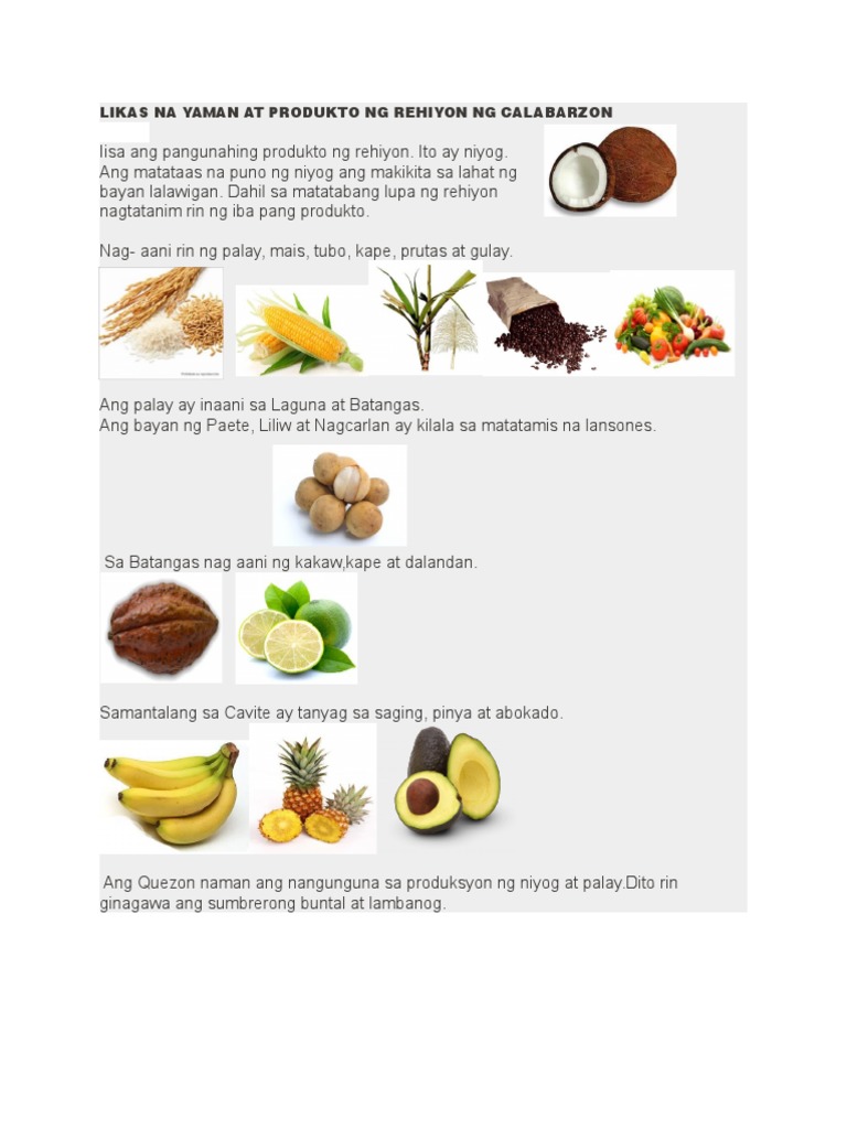 Likas Na Yaman At Produkto Ng Rehiyon Ng Calabarzon