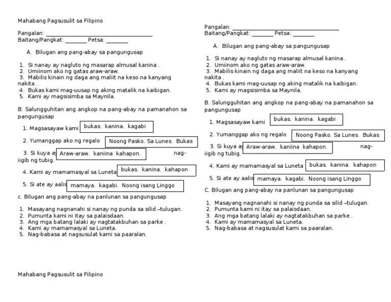 Once you find your worksheet click on pop-out icon or print icon to worksheet. Pamaraan paano ginawa ang isang bagay Halimbawa. 2014-01-04 The five pdf worksheets below are about Filipino adverbs mga pang-abayEach worksheet has 15 items.