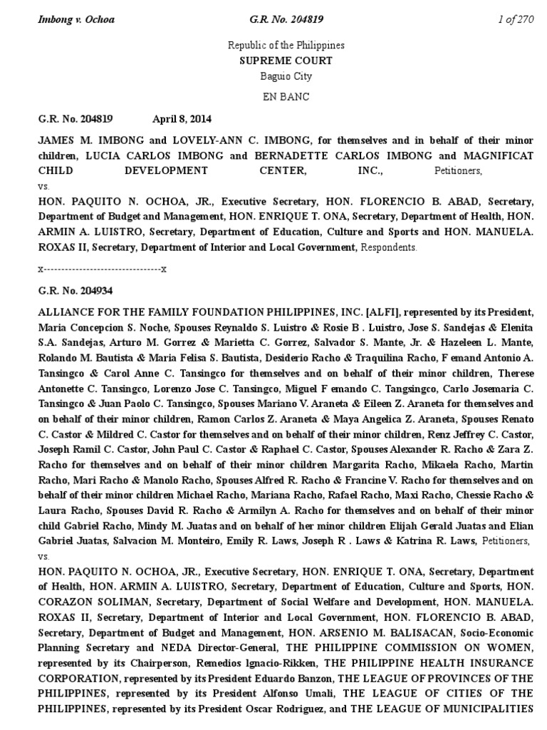 42 Imbong V Ochoa G R No 204819 April 8 2014 Standing Law Case Or Controversy Clause